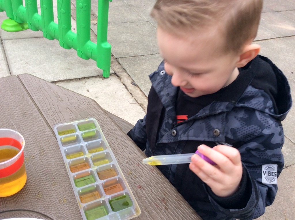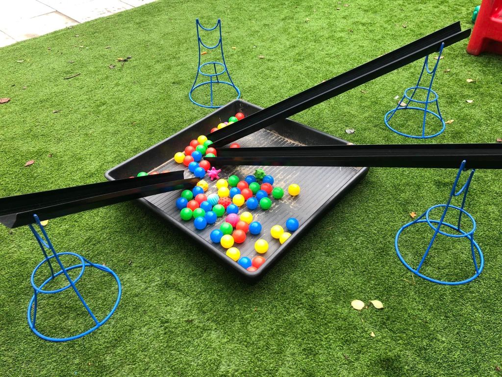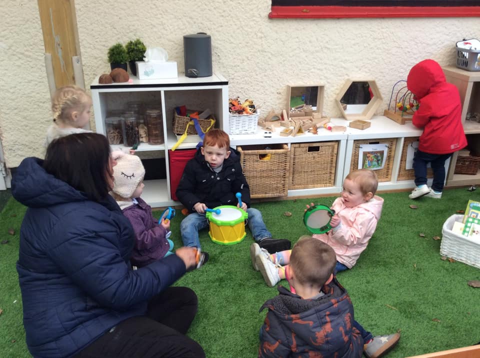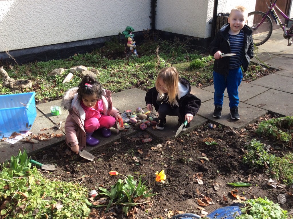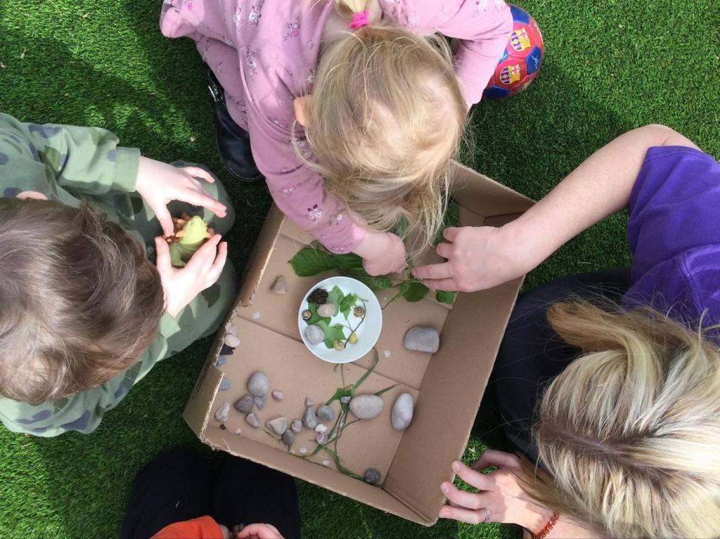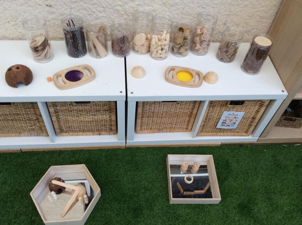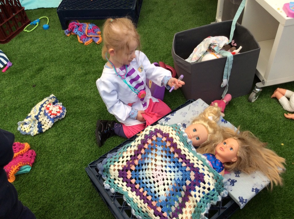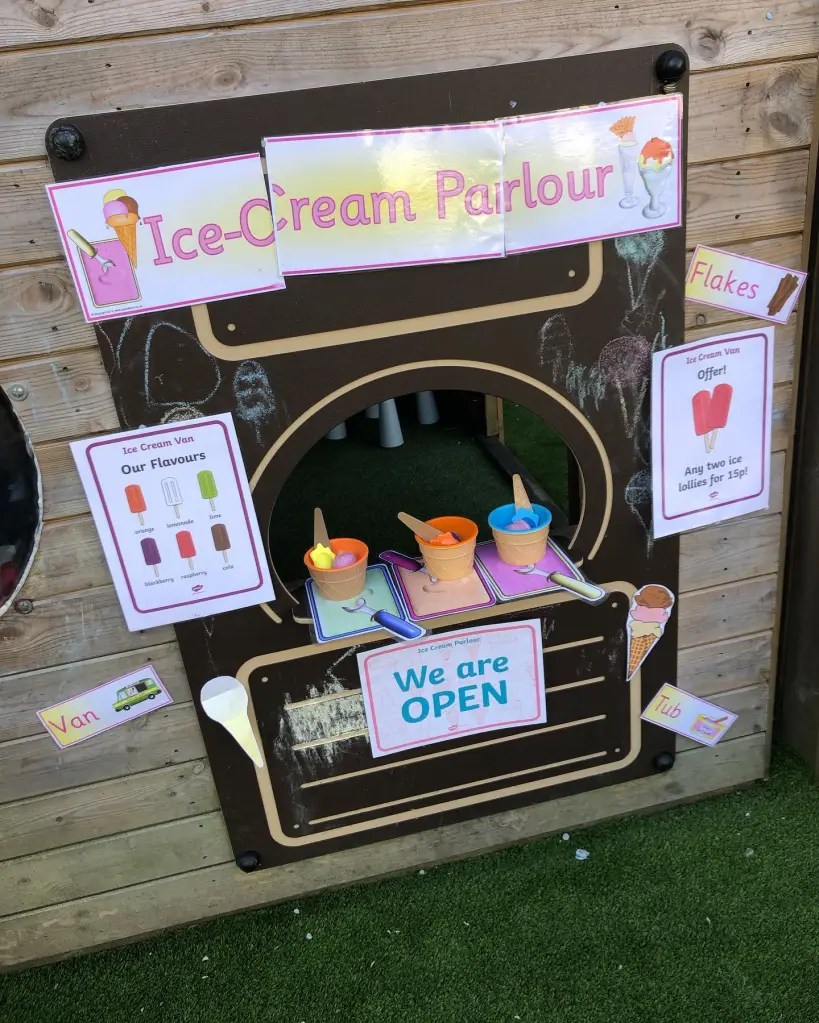 We have our outdoor classroom which is changed regularly we use it for small group activities, it has been a sensory room and various role play areas.
